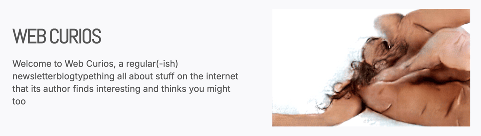 One of my longest-running subscriptions probably is to Web Curios, a lovingly-tended weekly digest of weird, wonderful and deeply interesting links curated by Matt Muir. He also co-runs the Tiny Awards, which we’ve discussed a bunch here. I was lucky enough to meet up with Matt in person last year, and he agreed to chat before Christmas for this series.