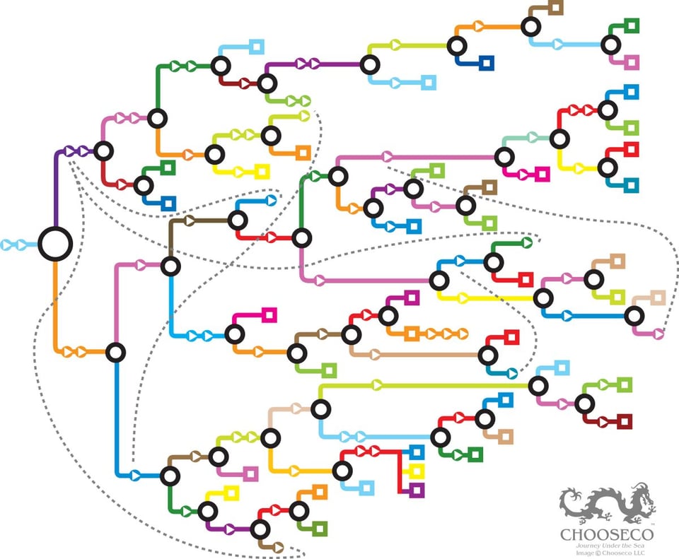 This isn’t new but I hadn’t seen it when I wrote about Choose your own Adventure books a few weeks back. Since 2004, reprints of the original books come with maps showing you the branching parts of the story (via kottke.org).