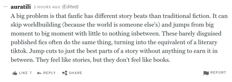 What’s being overlooked is that fandom isn’t just a reservoir of content to be mined or a demographic to be sold to. It’s a culture. One with norms, ethics, and long memories. When that culture is flattened into a sales funnel, you miss the nuance. You lose the trust and you court the kind of backlash that isn’t just about one book or one author — it’s about who gets to belong, and who gets left behind.