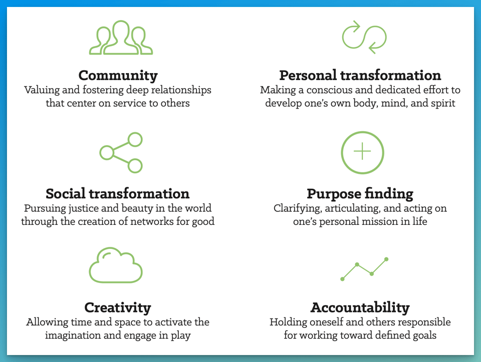 Even though it’s a decade old now, it’s a fascinating read, surveying groups like Crossfit and Soulcycle, summer camps for adults, dining groups and so on. They draw six themes that people are looking for when they gather: