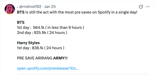 The thing is, I don't think most of the fans doing this are cynical or just “chart-juicing”. When an ARMY member sits up at midnight streaming "Dynamite" — one fan, during the push for 100 million YouTube views in 24 hours, wrote "I'm slowly losing hope, I'm afraid we won't reach our goal… but I won't stop str34ming" — they feel like they're doing something for someone they love, as part of a community. The streaming party is the bonding experience.