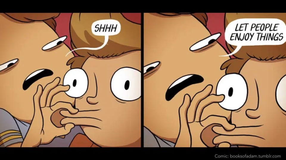 But "let people enjoy things" has drifted a long way from that reasonable starting point. It's now thrown around just as often to shut down any critical engagement at all — including from people who are deeply invested in the thing being discussed. Point out a structural problem in a show you love, and someone will tell you to let people enjoy things. Write thoughtfully about the labour conditions behind K-pop idol culture, and you're not letting people enjoy things. Ask whether it's healthy for a fandom to define collective worth through chart positions, and — you guessed it.
