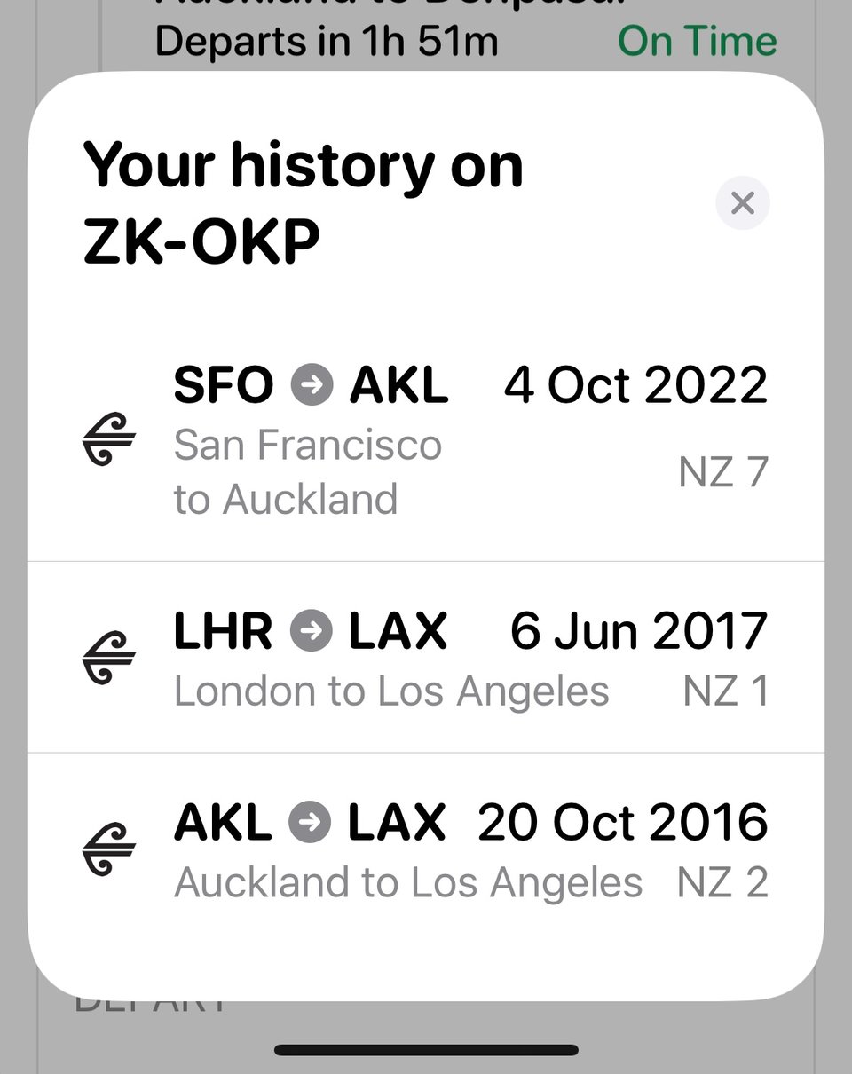 I signed up for the pro version of the Flighty app as I have far too many flights in my immediate future and was absolutely charmed when I imported my tripit history and discovered the data crunching Flighty does behind the scenes. Not only could it tell me that I’ve flown a climate-destroying 983,567km since 2008, but ALSO it can tell me that this morning I’m flying to Brisbane on a plane I’ve been on three times before. Ghost cars!