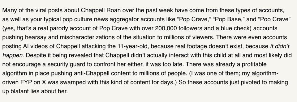 science fact we’ve talked here about how the stans need to get off X because it’s a racist hate machine, and how the right uses X to boost hate against successful women, so it came as no surprise to see that engine kick into gear again last week to trash Chappell Roan. Kat Tenbarge has written another definitive piece on this: