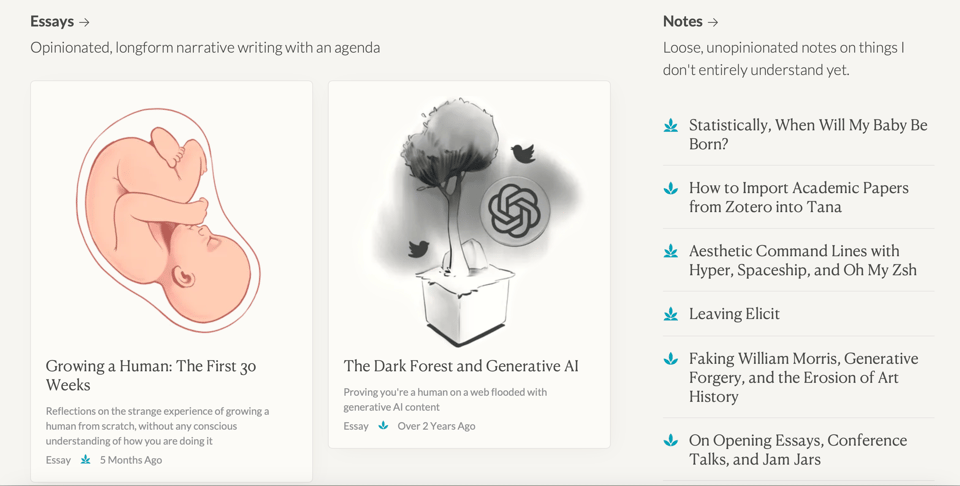 Sites that reflect a person’s process, not just their conclusions. It’s working with the garage door up.