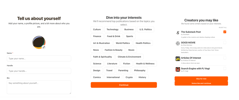 This is the one that set me off, actually. This is Substack’s app, jam-packed with every dark pattern I’ve come to hate about the current era. If you haven’t done this lately, let me show you what trying to sign up to receive a free email newsletter is like now: