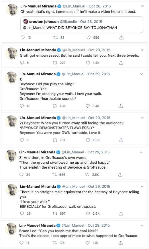 An aside. My favourite story about Jonathan Groff is from the night Beyoncé came to see the show: