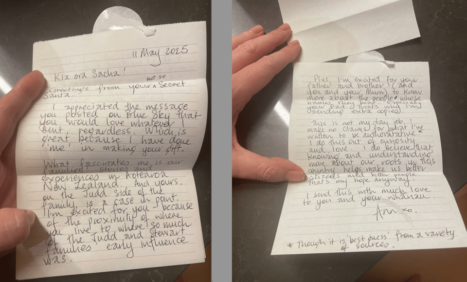 All of this would have been extraordinary and beautiful and heartfelt enough, without the added incredible revelation that my family is from the area in Aotearoa that I moved to ten years ago and I had no idea.